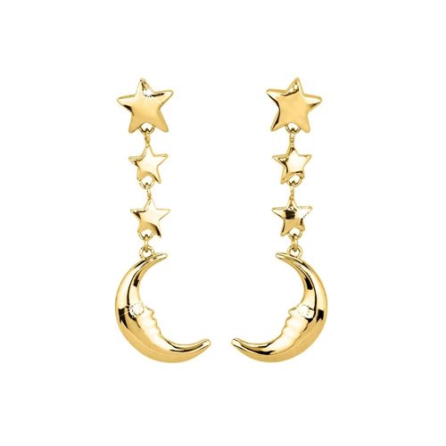 Orecchini donna in acciaio 316L , finitura oro giallo , pendenti cm 5 , cristalli bianchi. Immagine indicatia , la confezione può variare in forma e colore.