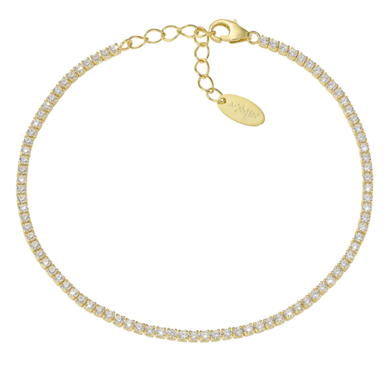 Bracciale in AG925 con zirconi bianchi - Oro - (Lungh. 17 + 3,5 cm; Ø 1 mm)