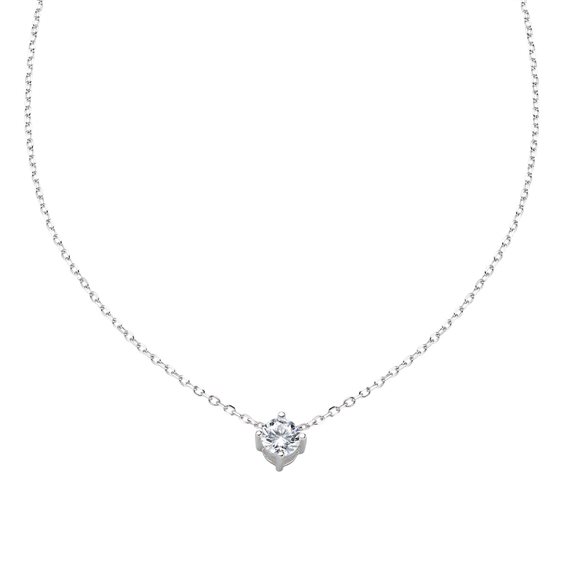 Collana Solitario Bianco 40mm - Collana in Argento 925 e zircone bianco - Rodio - Lunghezza 40 + 5 cm - Ø 0,4 cm