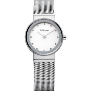 Orologio solo tempo da donna di Bering della collezione classic. Orologio con cassa della dimensione di 22 mm, di colore argento brillante e realizzata in acciaio inox. Modello con cinturino in acciaio, realizzato in maglia Milano, con chiusura a scatto. Questo orologio ha quadrante color argento spazzolato, con vetro zaffiro. Modello con movimento al quarzo e resistenza all'acqua di 3 atm. Caratteristiche aggiuntive: pietre crIsitalli, 3 anni di garanzia.