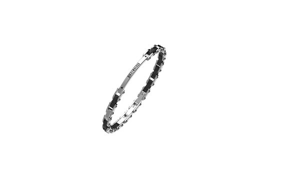 Bracciale in acciaio 316L, componenti in ebano naturale e diamanti naturali tot. ct. 0,02