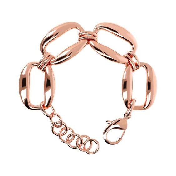 Un bracciale dai maxi volumi formato da anelli bombati in Golden Rose placcato oro rosa 18 carati. Un gioiello originale con un design autenticamente italiano caratterizzato da una maglia arrotondata e lucida.