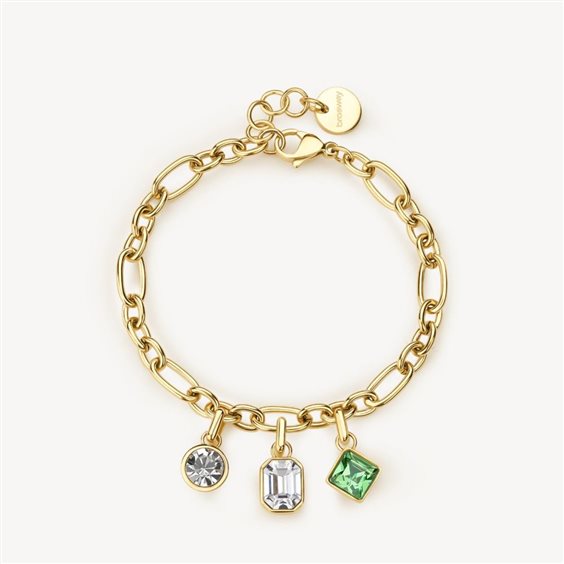 Bracciale Donna Pendenti 3 Cristalli Bianco, peridot e light citrine Misura 15+3 cm Acciaio 316L Dorato
