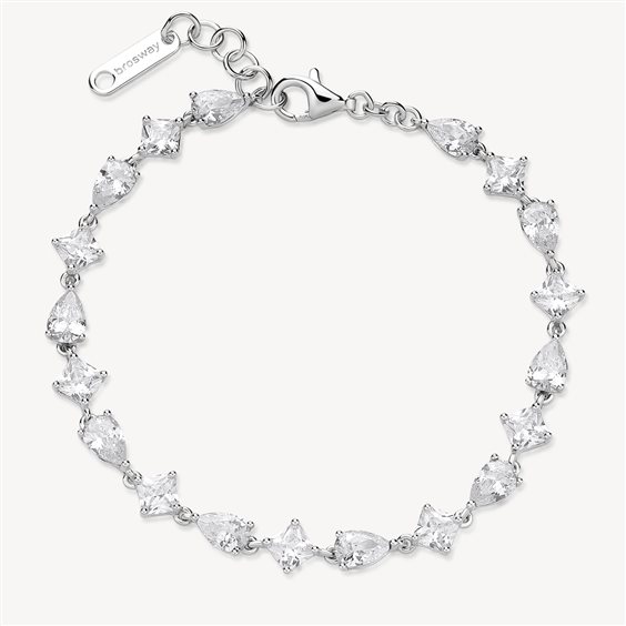Bracciale in argento rodiato 925‰ con square e pear cubic zirconia.