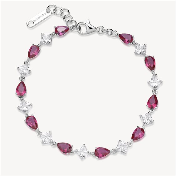 Bracciale in argento rodiato 925‰ con square cubic zirconia e pear cubic zirconia colore ruby.