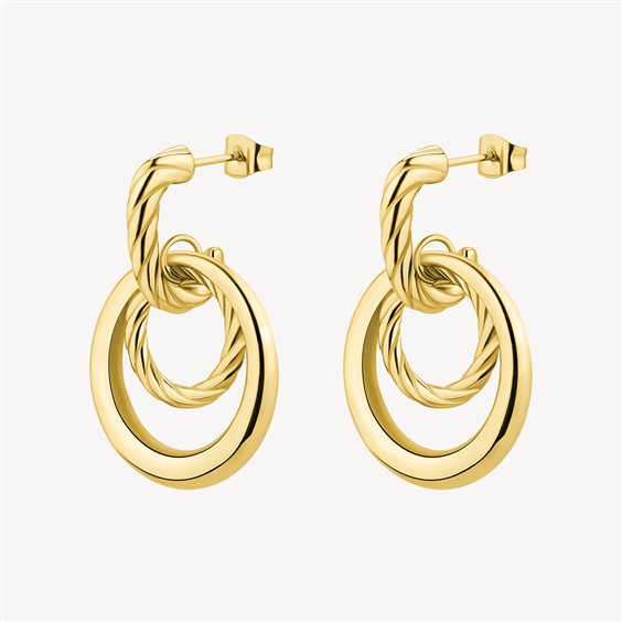 Orecchini pendenti in acciaio 316L e finitura pvd oro 14K.