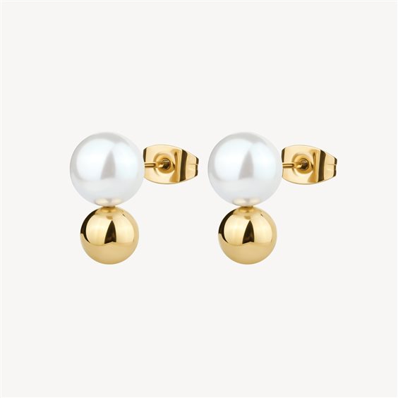 Orecchini a lobo in acciaio 316L, finitura pvd oro 14K e perle di conchiglia.