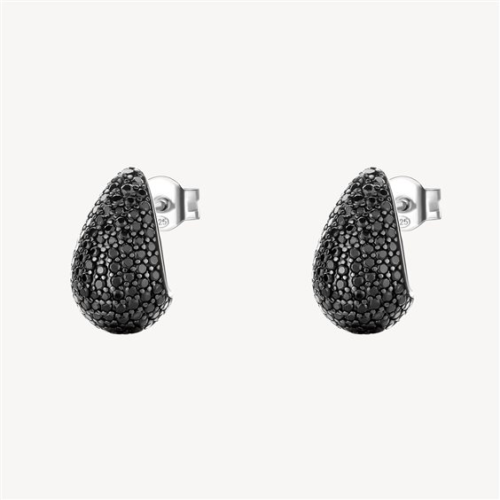 Orecchini a lobo in argento rodiato 925‰ con galvanica colore rutenio e cubic zirconia neri.