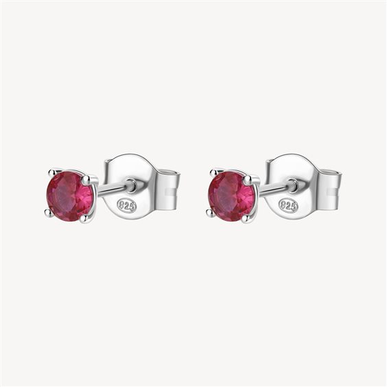 Orecchini a lobo in argento rodiato 925‰ con round cubic zirconia colore ruby.