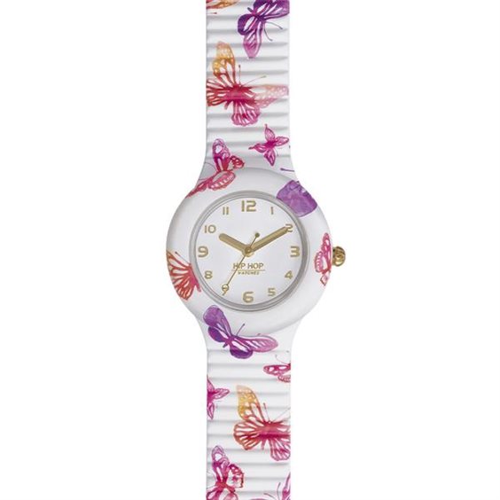 Orologio Hip hop con farfalle sui toni del rosa, viola, numeri in oro.