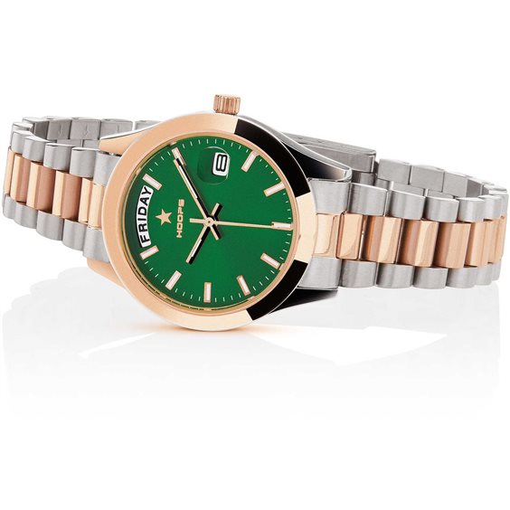 Orologio Solo Tempo Di Hoops Da Donna Della Collezione Luxury Day Date S&G. Modello Con Cassa In Metallo Di Forma Tonda. Diametro Cassa 33 Mm, Indici, Disco Data E Giorno Della Settimana. Questo Modello Ha Cinturino In Metallo E Movimento Myota. Orologio Con Datario E Resistenza All'Acqua Di 2 Atm. La Referenza È 2620Lsrg06