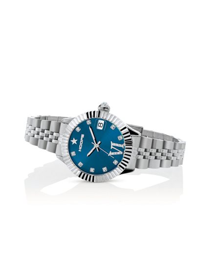 CASE: metal; MOUVEMENT: 3 hands; STRAP: metal; WATER: resistant; GLASS: trasparent;