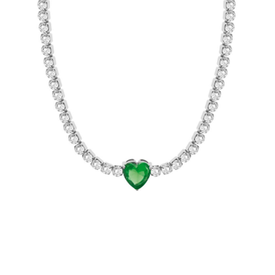 Marca Liu Jo: Collezione LJ2447. Collana in acciaio colore silver con zirconi colore bianco e cuore con zircone colore verde. Misura cm 40+5. Prodotto nuovo e originale spedito con scatola Liu-jo originale e shopper