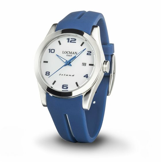 Orologio uomo con movimento solo tempo al quarzo, design esclusivo italiano. Cassa: DA 40 mm IN ACCIAIO INOX LUCIDO E SATINATO CON FONDELLO IN TITANIO. Quadrante: COLORE BIANCO CON NUMERI ARABI ALTERNATI A INDICI DI COLORE NERO E DATARIO, LANCETTE DI COLORE AZZURRO E DATARIO A ORE 3. Vetro: MINERALE ANTIGRAFFIO CON TRATTAMENTO ZAFFIRO. Cinturino: GOMMA SILICONICA DI CLORE GLU. Water resistant: 5 ATM.