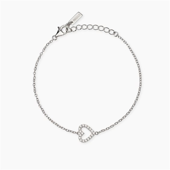 Bracciale in argento 925/°°° rodiato con catena rolò 1.4 mm ed elemento centrale cuore 8.6x9.4 mm con diamanti lab-grown 0.01 ct Ø 1.3 mm/pz, lunghezza regolabile da 16 a 19 cm