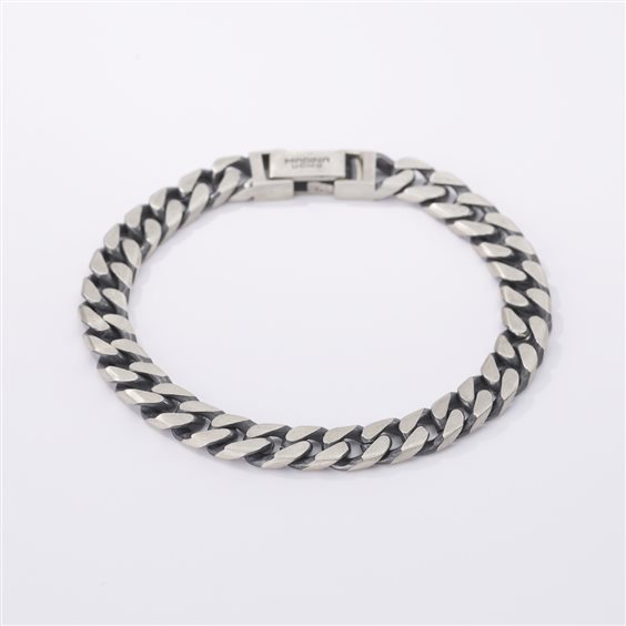 Bracciale groumette in argento brunito con finitura vintage. • Altezza della catena: 7 mm • Chiusura a pinza con molla • Misura medium, lunghezza 20 cm • Materiale: Argento 925