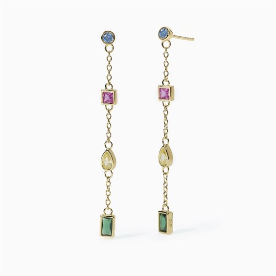 Orecchini Mabina in argento dorato a catena con zirconi multiforma e multicolor