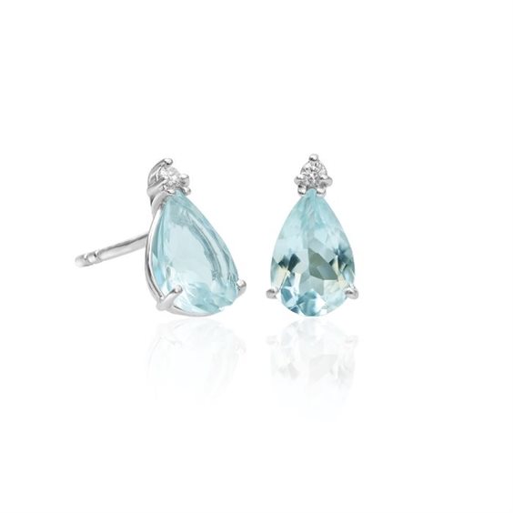 Orecchini lobo in oro bianco 18kt, Acquamarina Goccia ct.2,20 e diamante ct. 0,04