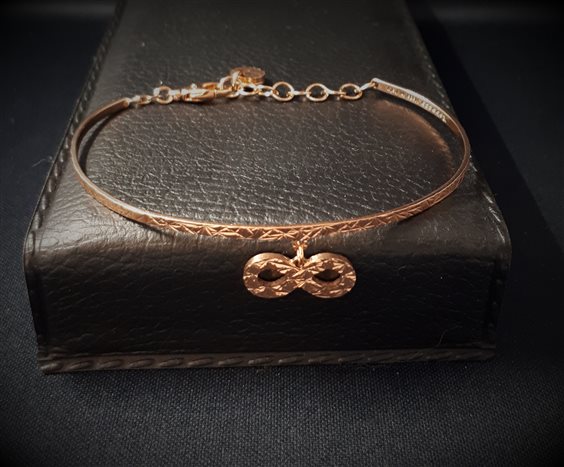 Bracciale rigido aperto sotto con catena e moschettone: larghezza polso cm 6.1
