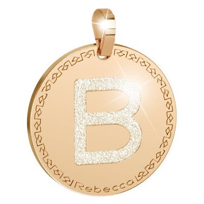 Pendente Con Lettera In Bronzo Con Glam Film Da Donna Della Marca Rebecca, Gioiello Della Collezione Myworld. Medaglia Grande In Bronzo Placcato Oro Con Lettera B In Glam Film Con Effetto Glitter. La Medaglia Misura 2,5 X 2,5 Cm. Questo Gioiello È Componibile.