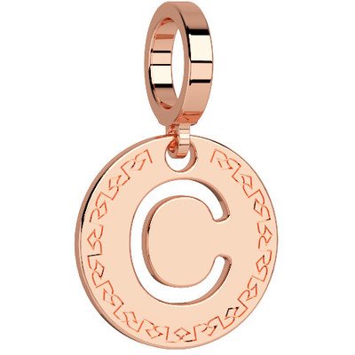 Charm in bronzo laminato oro rosa di forma circolare con lettera dell'alfabeto traforata, incorniciata da una greca incisa e logo Rebecca. Un cordino in cotone cerato di colore nero per questo charm è incluso nel prezzo: acquista la tua lettera e lo riceverai in regalo.