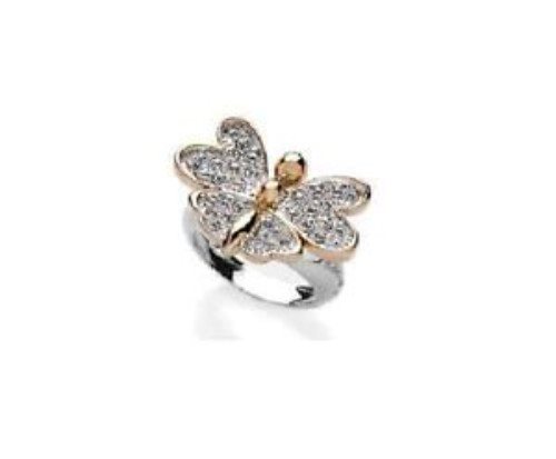 Anello Sweet Years Farfalla bicolore acciaio oro rosa, con zirconi sintetici
